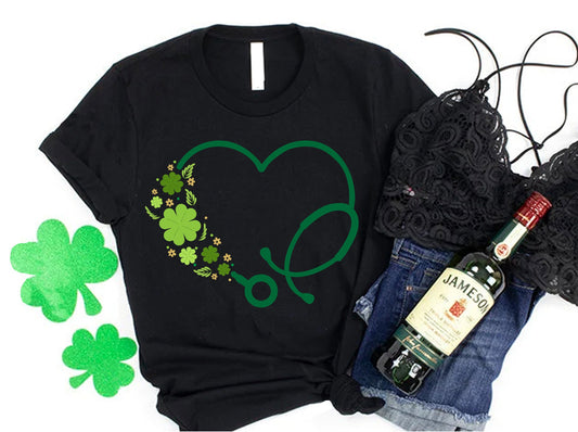 Clover Stethoscope St Patrick's Day Nurse T-Shirt