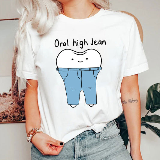 Teeth High Cut Jeans Dental Nurse T-Shirt