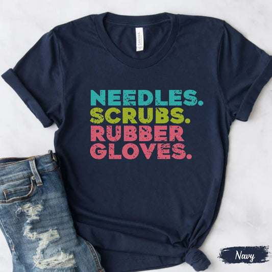 Needles Scrubs Rubber Gloves Phlebotomist Nurse T-Shirt