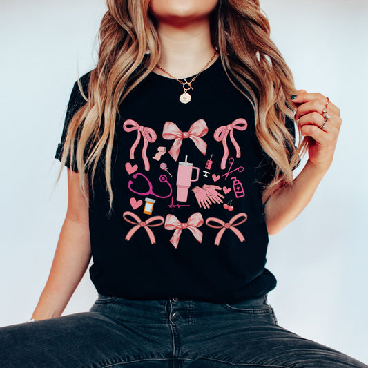 Cute Pink Coquette Bow Girly Nurse T-Shirt