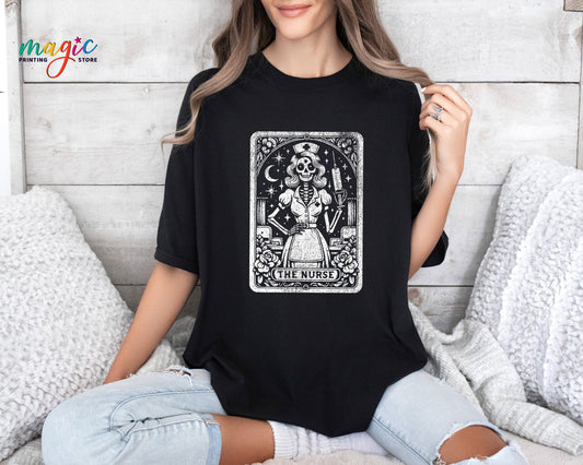 Tarot Card Funny Skeleton Nurse T-Shirt